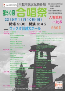 川越市合唱祭は、11月10日(日)9:30開場 9:45開演 入場無料です。